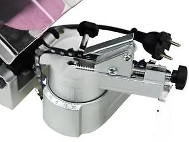 - Stabilna aluminijumska baza sa skalom za podešavanje ugla oštrenja (levo/desno)