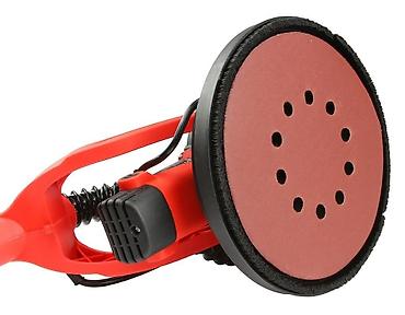 - Glava: okrugla brusna ploča Ø oko 225 mm sa rupama za ekstrakciju prašine; čičak sistem za brzo menjanje papirnih diskova.