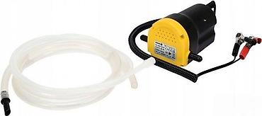 - Način rada: uroniti usisno crevo u otvor za šipku ulja ili rezervoar tečnosti, spojiti odlivno crevo u posudu, priključiti na akumulator i uključiti prekidač.