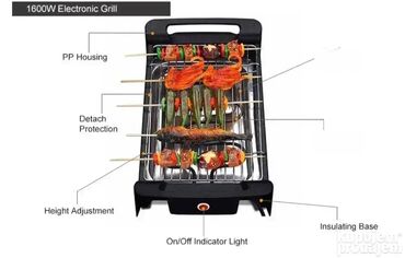 Električni roštilj. Lako podešavanje temperature. Posuda za kapljanje vode ispod rešetke i grejne spirale. Grejna spirala od nerđajućeg čelika sa termostatom. Odvojivi grejač. Odvojivi elementi. Po...