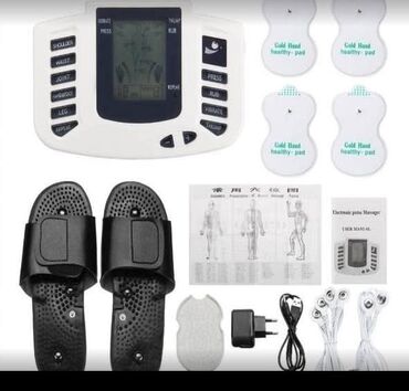 Dolazi sa 6 komada elektroda za masažu, punjačem, 2 žice za elektrode i parom terapijskih papuča