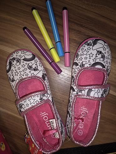 Devojčice * Baletanke/patofne sa jednorozima + flomasteri za bojenje * Veličina 32 - Brend: emoji (vidljivo na ulošku) - Model: baletanke sa čičak trakama za lako obuvanje - Veličina: 32 (oznaka ...