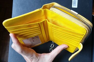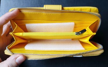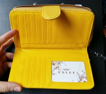 Eslee ženski žuti novčanik 2 pregrade prednja sa rajsferšlusom unutar koje ima 2 pregrade i još jedna sa manjim rajsferšlusom za sitan novac