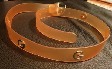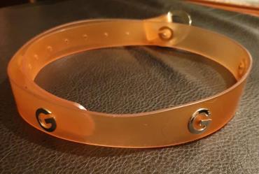 UpotrebljenоEsprit kais gumeni narandzaste boje. Svuda ukrug pise slovo G , pa jako podseca na G by guess modele.