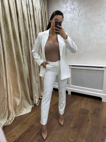 Dvondevni komplet – suknja i jakna od mekane, krem/bež tkanine. -