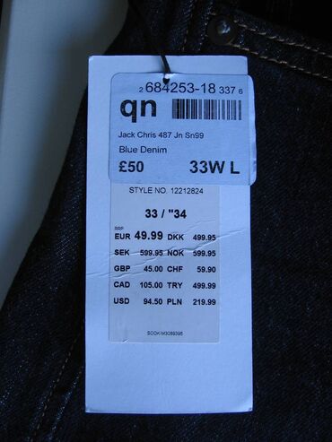 32341. Jack &Jones farmerke model Chris, tamnoplave boje, naznacena velicina W33 L32 - mere poluobim struka 45 cm, dubina napred-nazad 29/39 cm, duzina od spoja izmedju nogu 75 cm, ukupna duzina sa strane 104 cm, sirina nogavice kod prepona i na kraju nogavice 31/19 cm, komotne - takozvani loose fit, novo-nekorisceno sa etiketom. 2, Jack &Jones farmerke model Chris, tamnoplave boje, naznacena velicina W33 L34 - mere poluobim struka 45 cm, dubina napred-nazad 29/39 cm, duzina od spoja izmedju nogu 80 cm, ukupna duzina sa strane 109 cm, sirina nogavice kod prepona i na kraju nogavice 31/19 cm, komotne - takozvani loose fit, novo-nekorisceno sa etiketom. Cena je za jedne farmerke