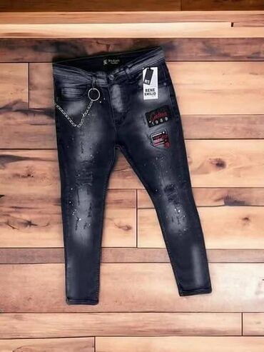 Muške uske farmerke – crne/ugljen s efektom ispranog denima i “distressed” detaljima. - Kroj: slim/skinny, srednji struk, sužene nogavice. - Materijal: elastičan denim (pamuk s dodatkom elastina) ...