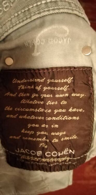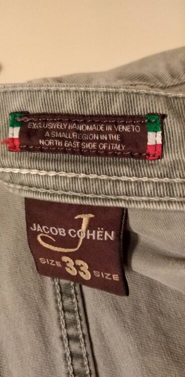 O trošku kupcaPokupiti na licu mestaMuske farmerke Jacob Cohen vel.33,slim fit,dimenzije:Duzina 109,iznutra nogavica 84,sirina struk 41,sirina zadnjica 52,sirina koleno 20,sirina kraj nogavice 17 cm.,fali nitna na malom džepu.