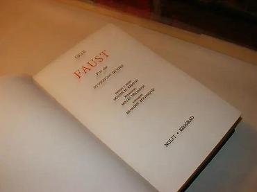 Faust Gete Prvi deo (dvojezično izdanje)Johan Volfgang GeteIzdavač: Nolit, Beograd 1979; preveo Ognjan Radović, predgovor Miljan Mojašević , napomene Branimir Živojinović, format 12,5 x 19,5 cm, srpsko– nemačkistrana 470. Tvrdi povez, zlatotiskStanje vrlo dobro, neznatno podvlačenje teksta.
