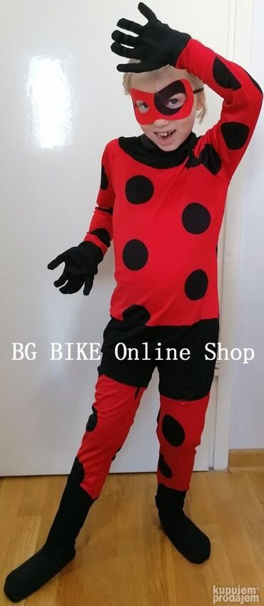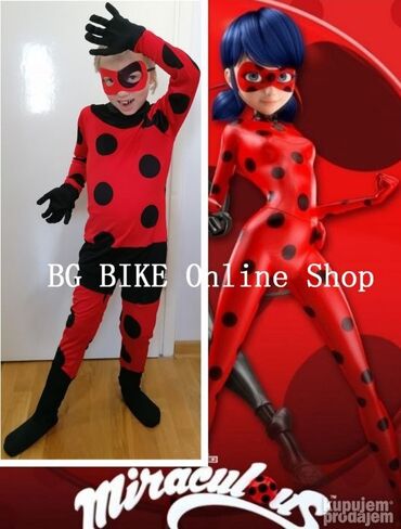 Fenomenalan kostim junakinje Mirakulus Miraculous Marinet je bubamara iz crtaća Čudotvorne pustolovine Bubamare i Crnog Mačka / Mirakulus**Kostim je iz jednog dela i ima ušivene rukavice i stopala + dobijate masku za oči .** *****na kutiji pise 10 do 14 godina ali mislimo da nije realno, da je za maksimalno 12 izmerite svakako dete pa proverite sa ovim merama.** - duzina celog kostima mereno od ramena bez stopala 122, obim grudi od 76 do 96cmnovi kostimi, više veličina Preko 400 vrsta kostima. Pitajte šta Vas interesuje NOVO Kostim za decu deciji kostimi za maskenbal, maskembal , maska maske za halloween noc vestica ili zurku**POGLEDAJTE OSTALE NASE OGLASE****> > > > > > > > > > > > > > > > > > > > > > > > > > > > > > > > > > > > > > > > > > ****Ovaj artikal mozete poruciti na sledece nacine:****1) Porukom ovde na sajtu sa podacima za slanje i brojem telefona****2) Pozivom na mobilni ili porukom SMS, Viber, Whatsapp** Trudimo se da odgovorimo i posaljemo artikal u kratkom roku. Pre slanja cemo obavezno jos jednom potvrditi detalje. Robu saljemo Post Expressom. Postarinu placa kupac prema cenovniku koji mozete videti na njihovom sajtu. Robu mozete preuzeti i licno na Novom Beogradu uz obavezan prethodni dogovor. Povracaj i reklamacije na robu u skladu sa Zakonom o zastiti potrosaca. BG BIKE ONLINE SHOPBeogradPIB: