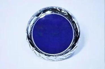 - Okrugli amblem sa ljubičasto-plavom podlogom i hromiranim pletenim rubom