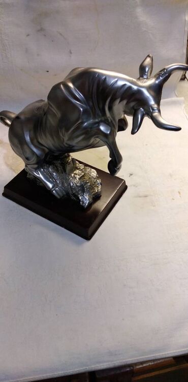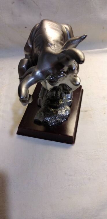 O trošku kupcaPokupiti na licu mestaFigura bika na drvenom postolju,visina 21 cm. sirina dijagonalno 29 cm. plasticna malo izgrebana.