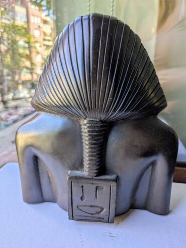 Pokupiti na licu mestaVelika kamena figura Tutankamona, dimenzija 18x22x12, težine 3.320 grama. U odličnom stanju. Boja crna.