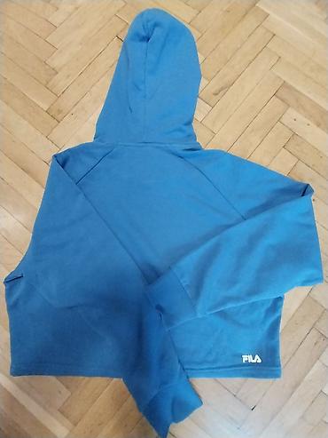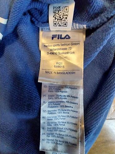 - Detalji: kapuljača sa učkurima u crnoj boji, široke ranfle na rukavima, veliki FILA logo u bele linije napred pri rubu i manji FILA natpis pozadi pri dnu