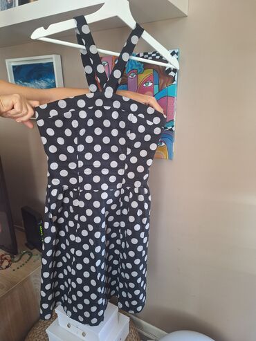 Fornarina tufnasta haljina, u pinup stilu, S velicina, crna na svetlo sive tufne, ocuvana i bez ostecenja