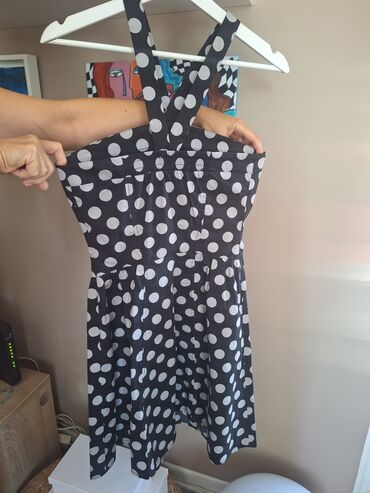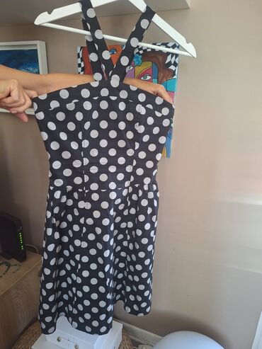 Fornarina tufnasta haljina, u pinup stilu, S velicina, crna sa svetlo sivim tufnama, ocuvana