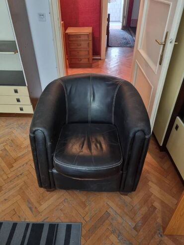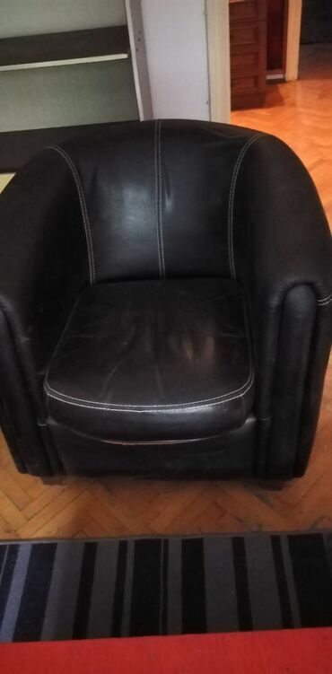 Pokupiti na licu mestaFotelja prava koza bez razvlacenja ,ocuvana.Dimenzije:Duz.90,sir.80,vis 75 cm.Preuzimanje svakog dana Bgd, Admirala Geprata 11.