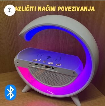 Kombinujući svetlo duge atmosfere, sat, bežični punjač i prenosivi zvučnik, ova lampa nudi praktičnost i stil u jednom paketu.