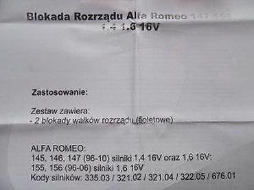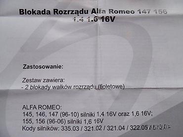 - Namenjen za benzinske motore 1.4 i 1.6 16V u modelima Alfa Romeo 147 i 156 (primenljivo i na srodne motore iz iste serije prema fabričkim specifikacijama).