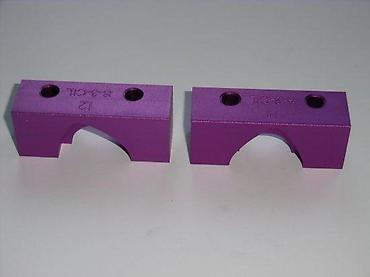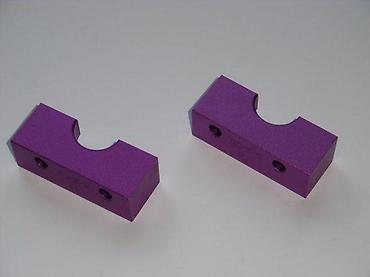 - Dvodelni set; precizno mašinski obrađeni aluminijumski/aluminijumski legura blokovi sa anodizovanom (ljubičastom) zaštitnom završnom obradom.
