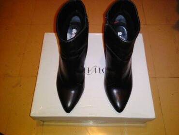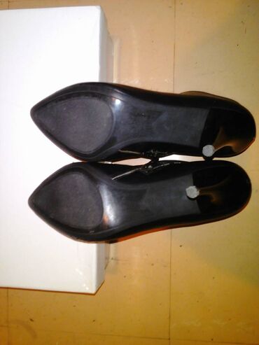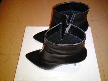 Crne gleznjace sa potpeticom i ukrasnom kicankom.Kopcanje na rajferslus.Par puta obuvene.Bez ostecenja.Velicina 39.Cena 1000dinara.