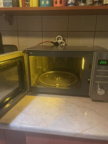 Pogodna za brzo podgrevanje, odmrzavanje i jednostavnu pripremu obroka. Elegantni sivi dizajn uklapa se u svaku kuhinju. Na prednjem panelu su označene osnovne funkcije i programi, a unutrašnji tanjir se lako skida i pere.