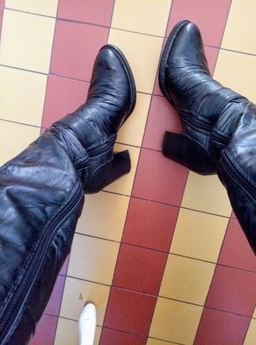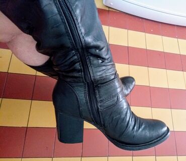 Kožne ženske čizme do kolena – konjak braon br 39 naznačeno - Materijal: prirodna koža spolja, verovatno kožna ili kvalitetna sintetička podloga; čvrst gumeni/ders plitki đon - Visina: do kolena, ...
