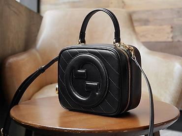 - Dizajn: kompaktan kvadratni oblik sa podignutim dvostrukim G logotipom napred; dijagonalno prošivanje