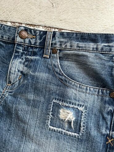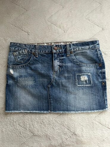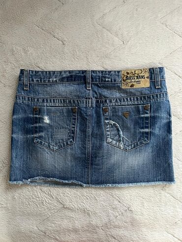 Bela teksas suknja sa bisernim aplikacijama - Model: ravna/pencil silueta do kolena, „mom“ kroj - Materijal: 98% pamuk, 2% likra (etiketa: GERONI’S, veličina 38, Made in Turkey) – prijatna elastič...
