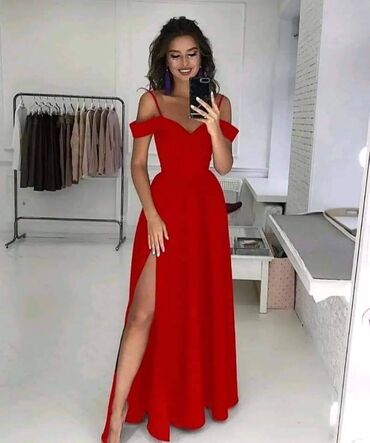 Svečana duga haljina u crvenoj boji sa korpičastim gornjim delom i visokim šlicem na nozi. vel S/M za ozbiljne kupce saljem snimak