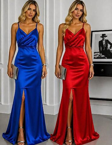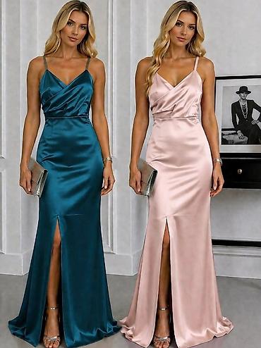 - Elegantna duga satenska haljina sa prorezom napred