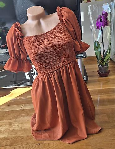 Haljina boje terakote sa karnerima - Romantična midi haljina u toploj