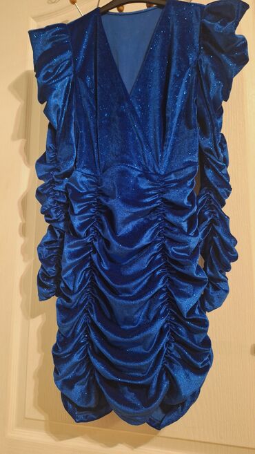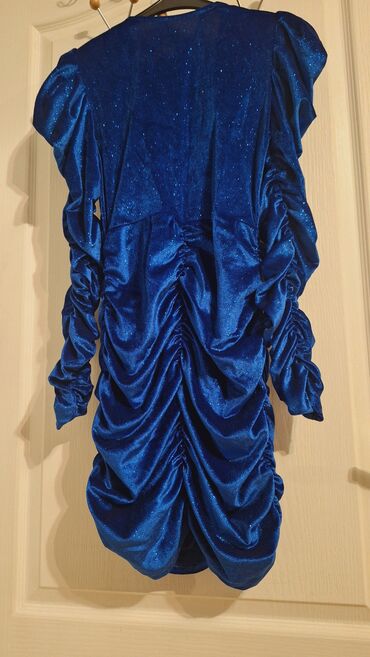 JednobojniHaljina kraljevsko plava NOVA svecano elegantna na V izraz i nabrana napred i pozadi! Prelepo stoji, prati liniju tela! Duzina: 94-97cm, duzina rukava 63cm! Br. M/L!