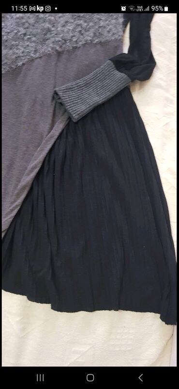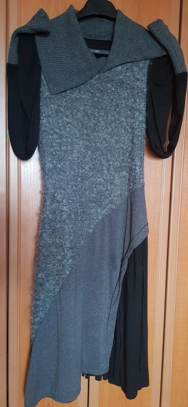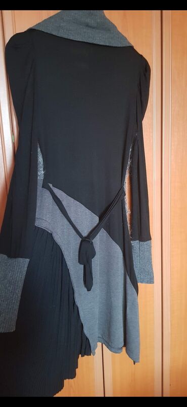 Haljina NOVA iz Italije,kombinacija sivo crnog pamuka i trikotaze izuzetno kvalitetne (napred bukle sivi, trikotaza na ranflama na rukavima i sal kragna), sto je cini jedinstvenom i posebno lepom! Izuzetno elegantna, moderna, za sve prilike i za sva godisnja doba! Br. L(40)/XL(42)! Placena 4.500 din!