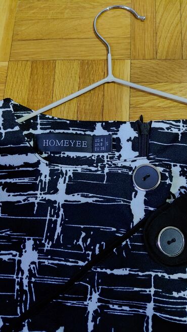 Crna, svečana haljina vel. 38, M, sa asimetričnim rubom napred kraća, odprilike do kolena, pozadi duga, postavljena, obučena samo 2-3 puta, lepo očuvana.
