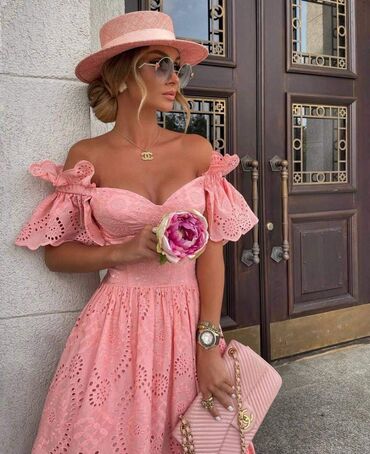 Elegantna ženska haljina – krem/bela, kroj olovka (bodycon), dužina do kolena. Kratki rukavi sa metalnim dugmadima na ramenima, okrugli izrez. Sa prednje strane dva vertikalna štampana motiva inspi...