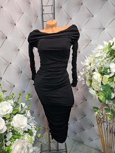 Elegantna večernja haljina od somota (ZARA). - Boja: tamno plava/indigo sa diskretnim sjajem. - Kroj: duža silueta koja prati liniju tela; blago podignuta ramena; okrugli izrez. - Materijal: mekan...