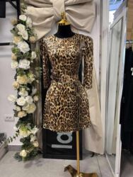 Elegantne EVAROZA mini haljine sa animal printom – dostupne u motivu zmijske kože i leoparda. Model sa okruglim izrezom, 3/4 rukavima i naglašenim ramenima ističe figuru, dok uklonjivi kaiš sa metalnom kopčom dodatno definiše struk. Blago pripijena silueta i ravni porub do sredine butine pružaju moderan, sofisticiran izgled pogodan za večernje prilike i posebne događaje. Materijal je prijatan na dodir, sa blagim sjajem koji naglašava print. Veličine: S, M, L. Cena: 4000 din.