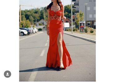 Haljina koju sam sila po meri, otprilike M velicina, nosena samo jednom. Nema nikakvih ostecenja, bila je na hemijskom. Boja je jos lepsa uzivo😊