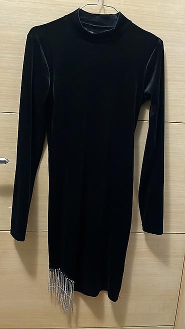 Crna haljina sa dubokim dekolteom. Duzina i sirina na slikama.