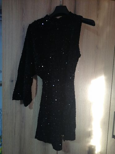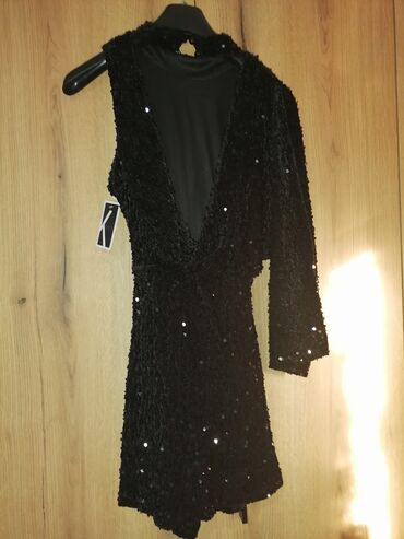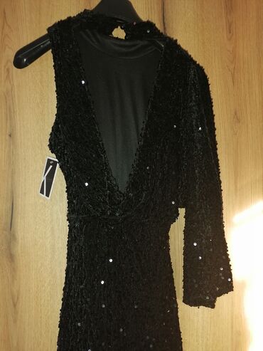 Haljina nova sa etiketom. Mekana i sjackava novogodišnja. Jedno rame otvoreno. Kopča se pozadi na vrat ledja otvorena. Iznad kolena odgovara svim brojevimaod s do xl Prelep model. Ima šlic sa strane i. Postavu