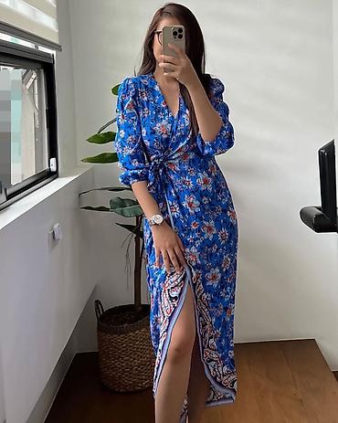 🔥Elegantna midi haljina s 3D cvetom i izrezom ✅1900 din