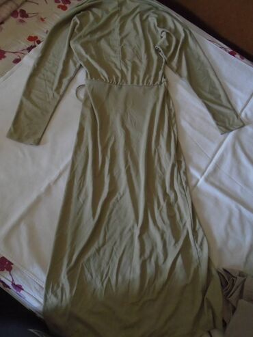 H&M haljina na preklop, neka boja peska. Preklop je ušiven u struku i vezuje se, XS veličine.
