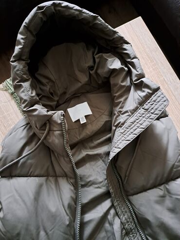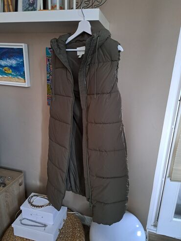 Drugi materijalH&M maslinasti dugacki perjani prsluk, debeo, nosen 2 puta, kao nov, velicina xs, ali odgovara i za S