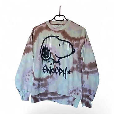 - Dizajn: tie-dye spirala u nijansama ljubičaste, smeđe i mint zelene; veliki otisak Snoopy na prednjem delu; rebraste ranfle na rukavima i struku
