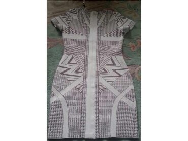 Uska ženska pletena haljina, midi dužine, u belo-krem nijansi. Model je pripijene siluete sa spuštenim ramenima i 3/4 rukavima. Materijal je rebrasti trikotaž koji prati liniju tela. Na levoj stran...