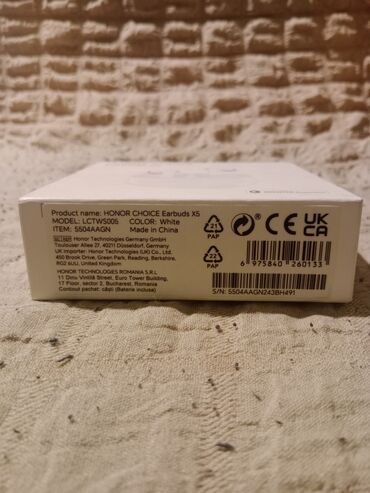 U pakovanju: HONOR CHOICE Earbuds X5 (navedeno na kutiji). Proizvođač: Jiangxi Lianchuang Hongsheng Electronic Co., Ltd., Kina.