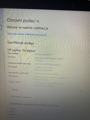HP laptop – ekran Specifikacije vidljive na fotografiji: - Procesor: Intel Celeron - Memorija (RAM): 4 GB - Disk: ukupno oko 297 GB (C: ~102 GB, D: ~195 GB) - Optički uređaj: DVD-RW (E:) - Operat...65 EUR