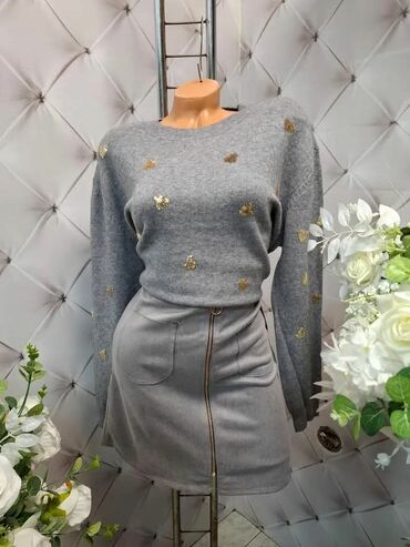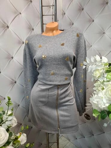 Ženski džemperi i bluze – više modela i boja...Vel L xl... - Tirkiz džemper sa okruglim izrezom: tanji plet, dugi rukavi, diskretan sitotamp/foklorni cvetni dezen raspoređen po prednjem delu, elas...