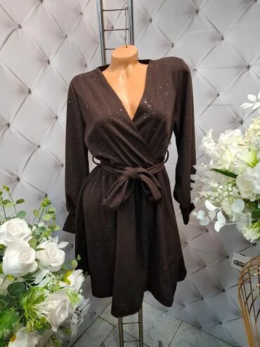 Haljina na siroke bratele sa dekolteom.Nabrana sa obe strane push up,sa elastinom.Ima postavu. Dostupna samo tamno braon boja sa sljokicama. XXS,XS,S,M,L,XL,2XL,3XL,4XL,5XL 1200 NOVO NOVOGODISNJA A...